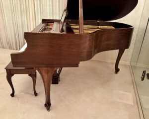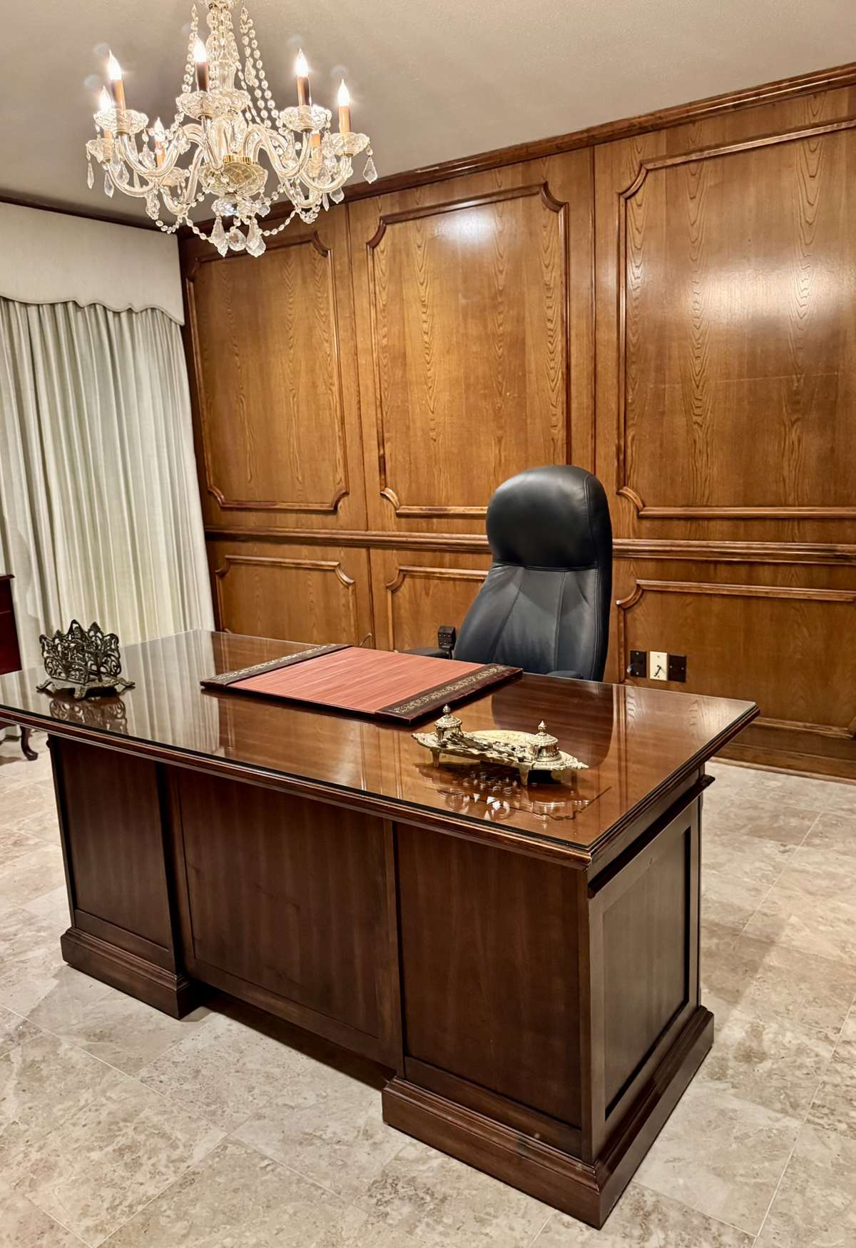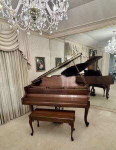 Inside, the living areas offer comfortable Italian leather seating, tasteful décor, and the impressive Baldwin grand piano that sets the tone for the home. Lighting and artwork are placed with an eye for balance, creating a relaxed yet refined atmosphere.
