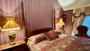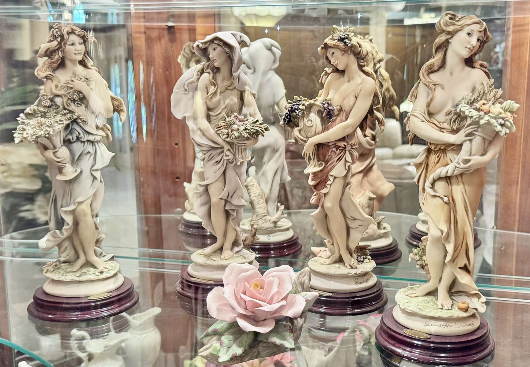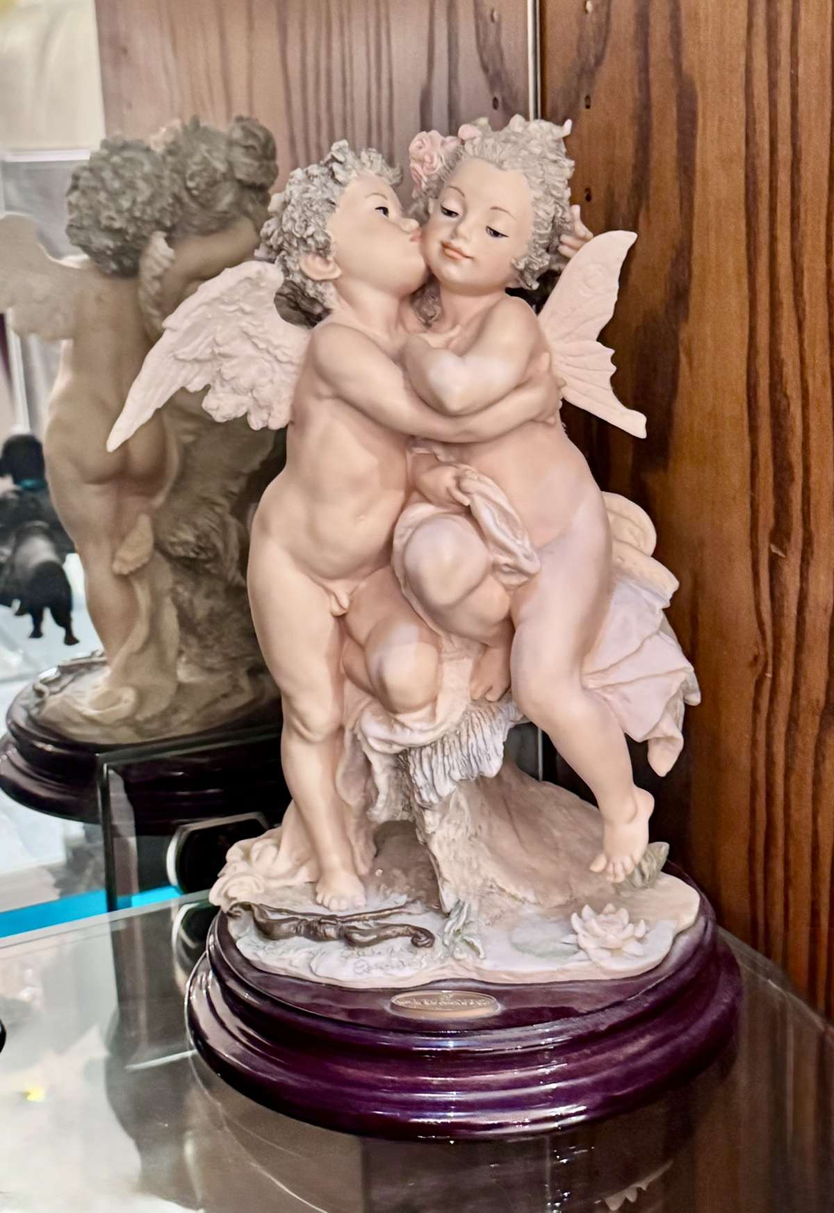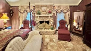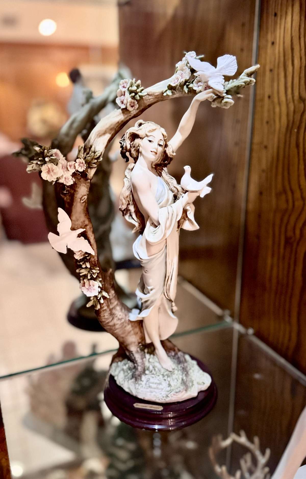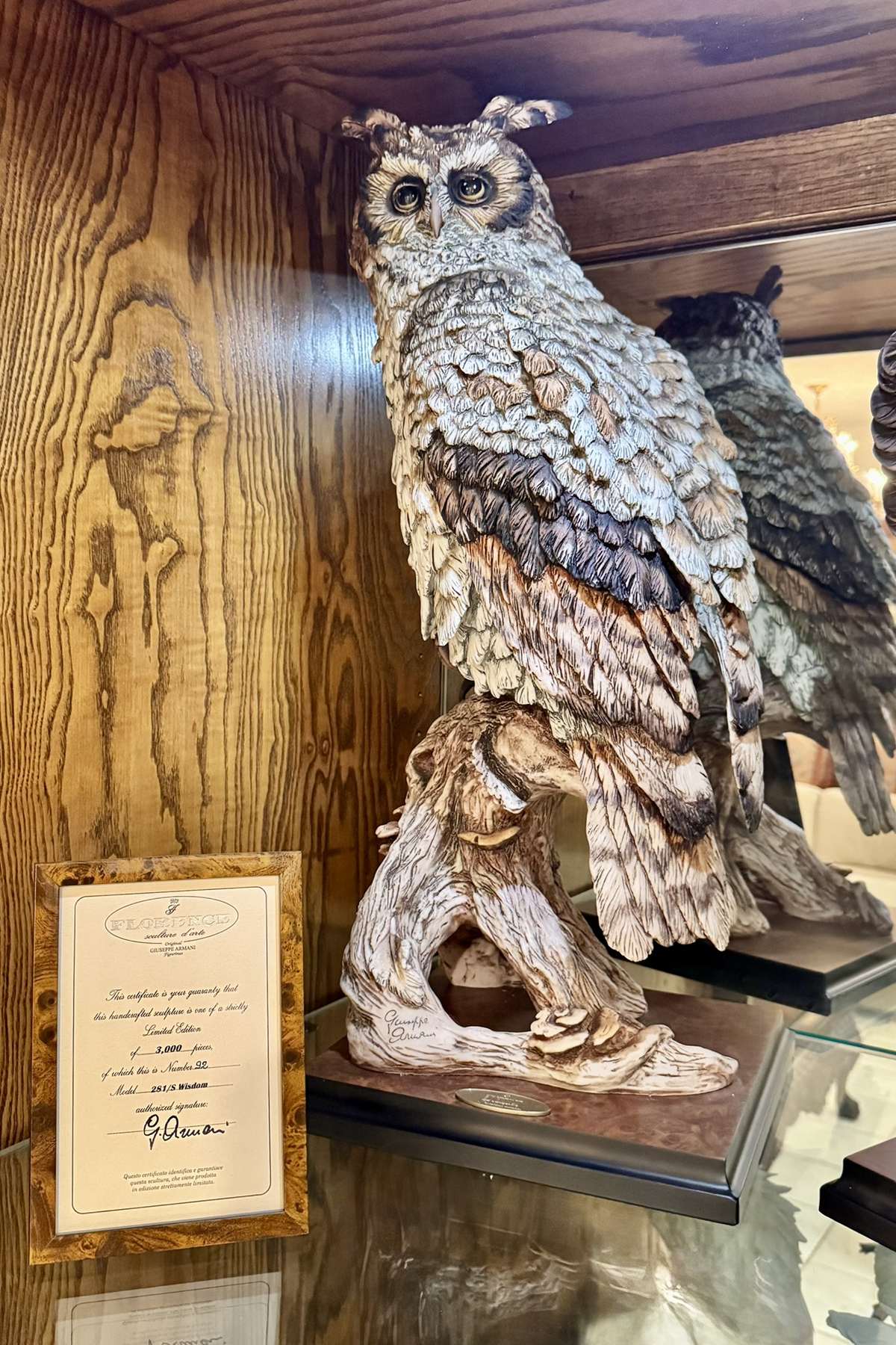 The home also features a noteworthy collection of Giuseppe Armani sculptures from Florence, Italy, thoughtfully arranged and well cared for. The bedrooms continue the home’s calm, cohesive look, including a beautifully dressed canopy bed with coordinated custom linens and décor.