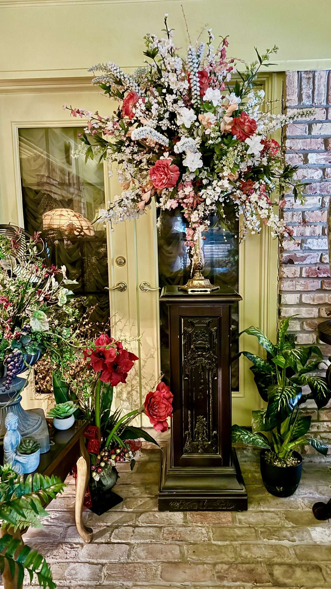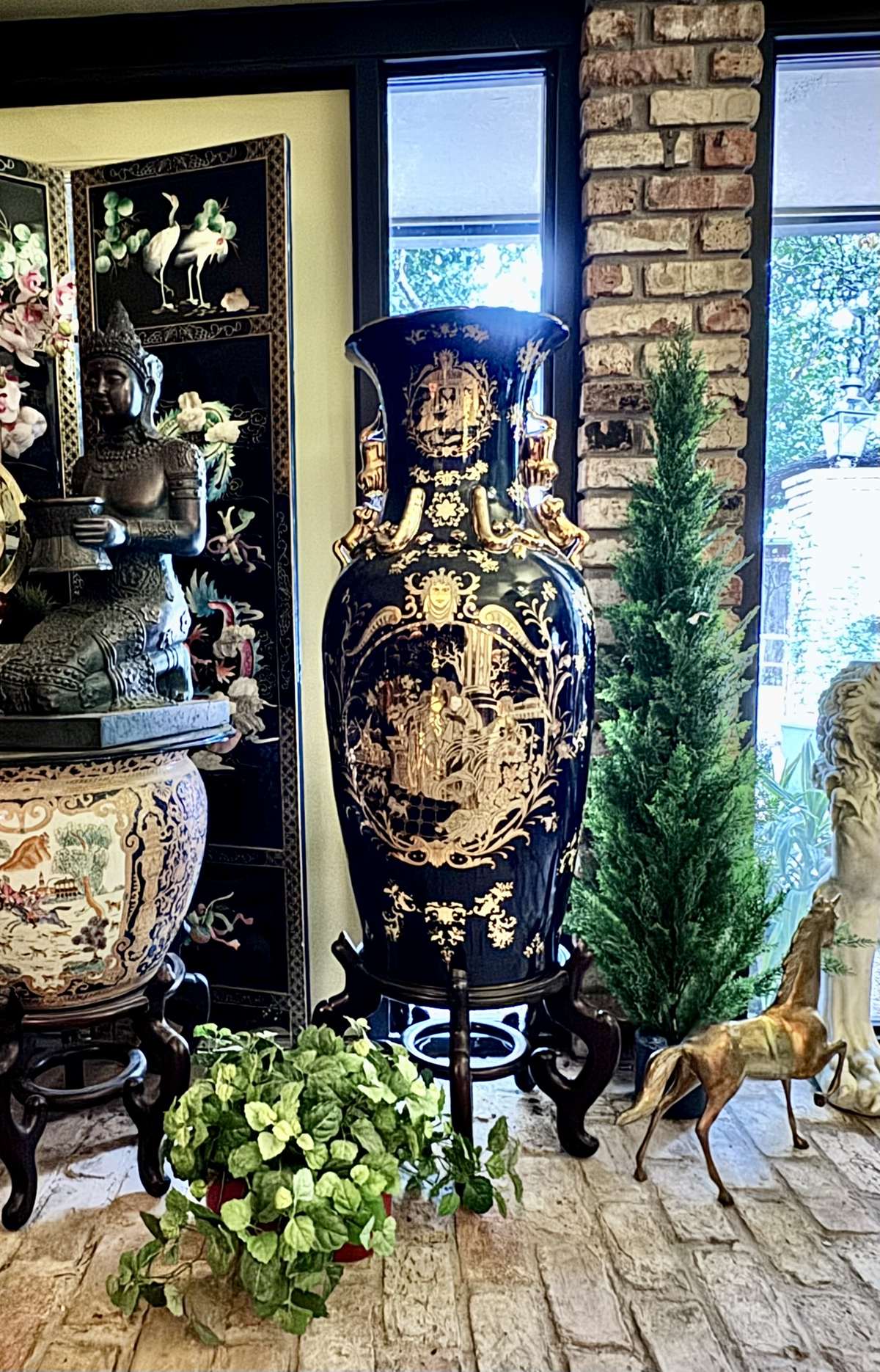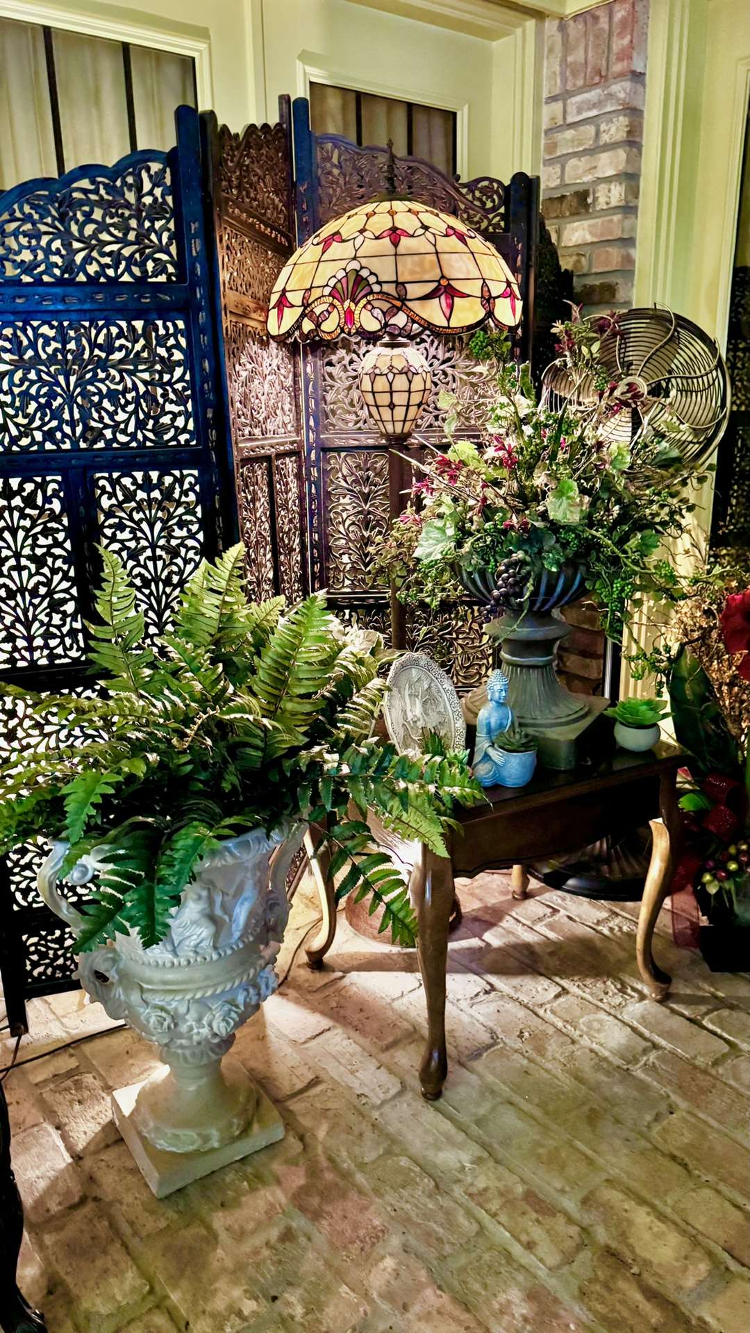 Welcome to the Living Estate of Buck and Bobbie Rose Whorton—a well-kept home filled with warmth, comfort, and years of thoughtful collecting. From the moment you enter, you can feel the care and intention the Whortons put into creating an environment with touches of Southern tradition and Italian and French influence from their travels throughout Europe. Cast iron pedestals and urns flank the front entry, adding a classic touch as you approach the home.