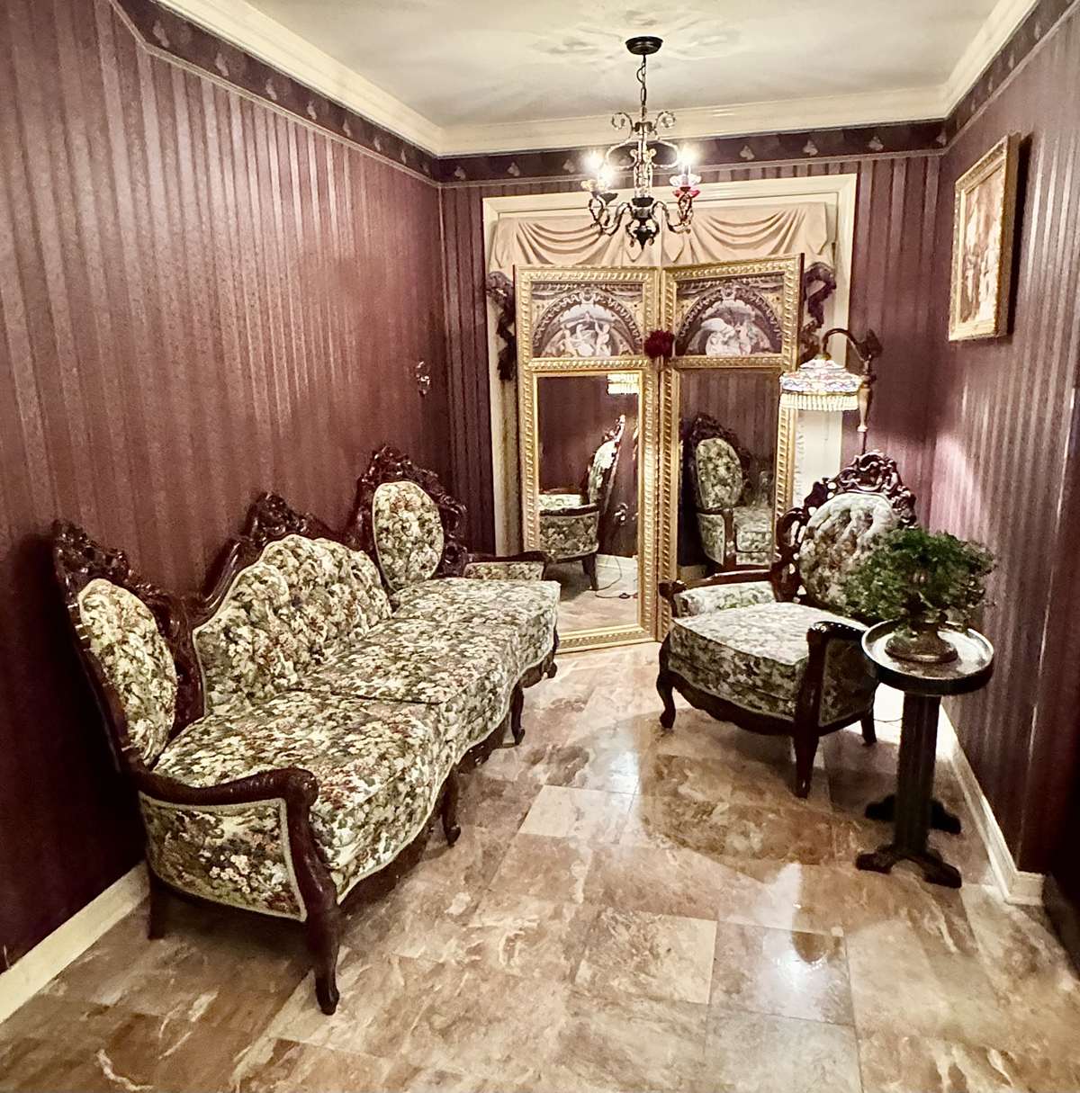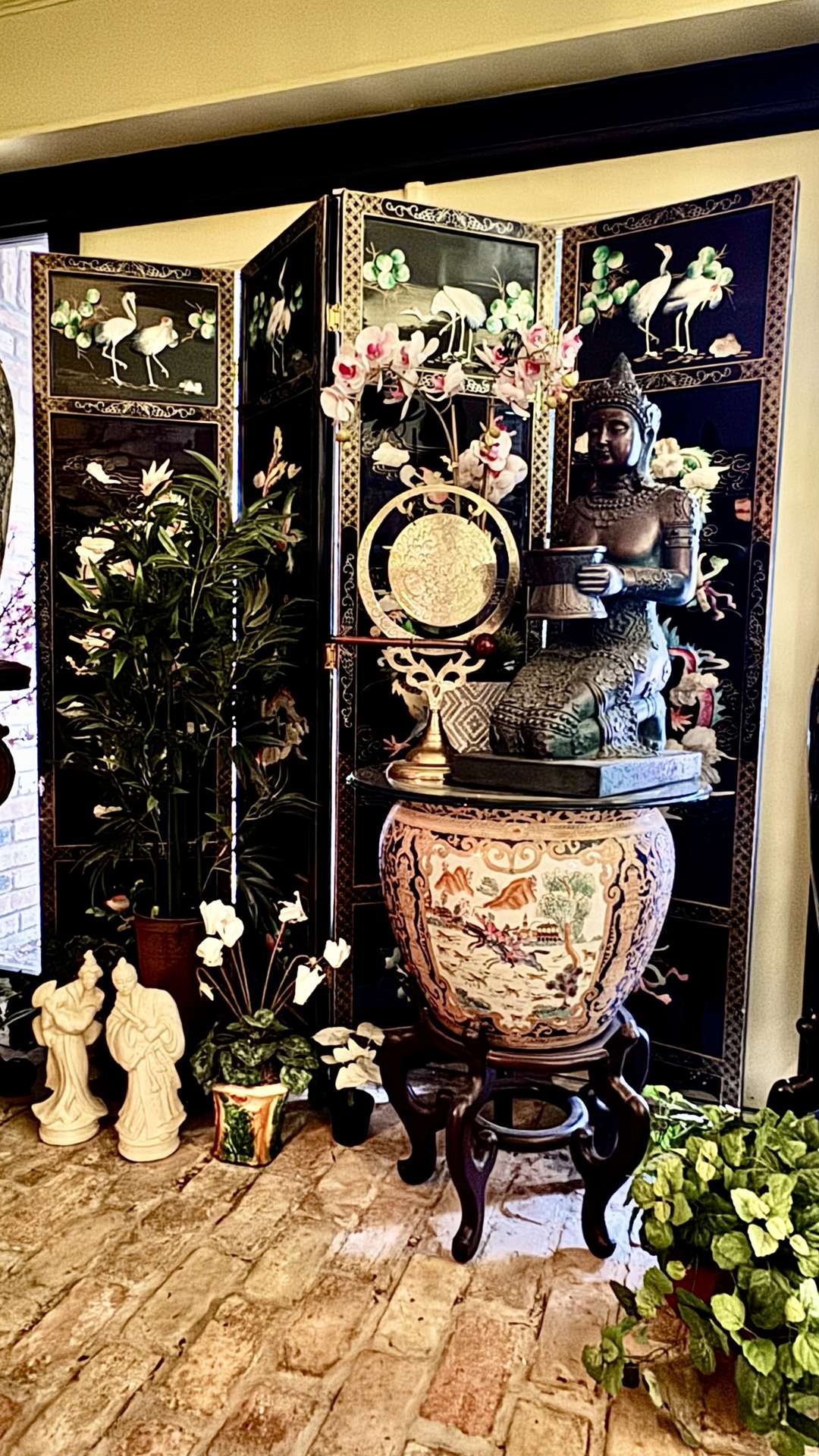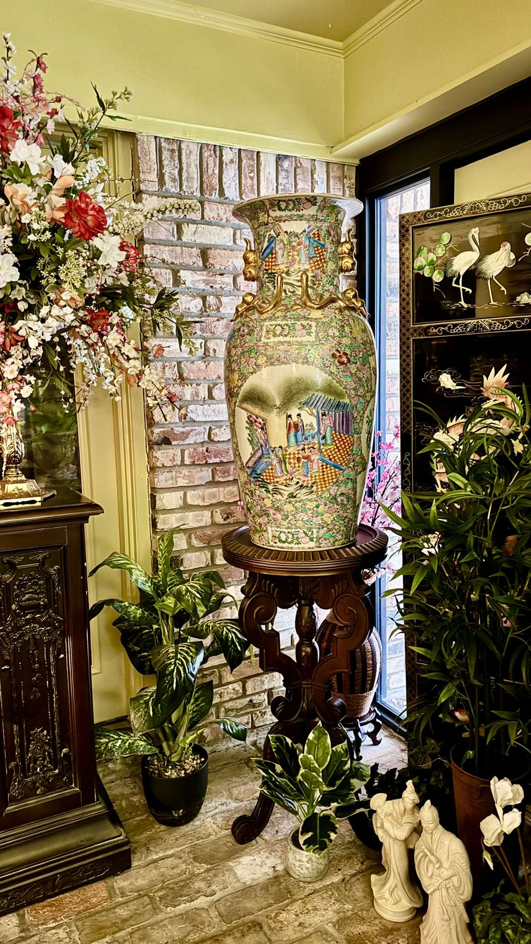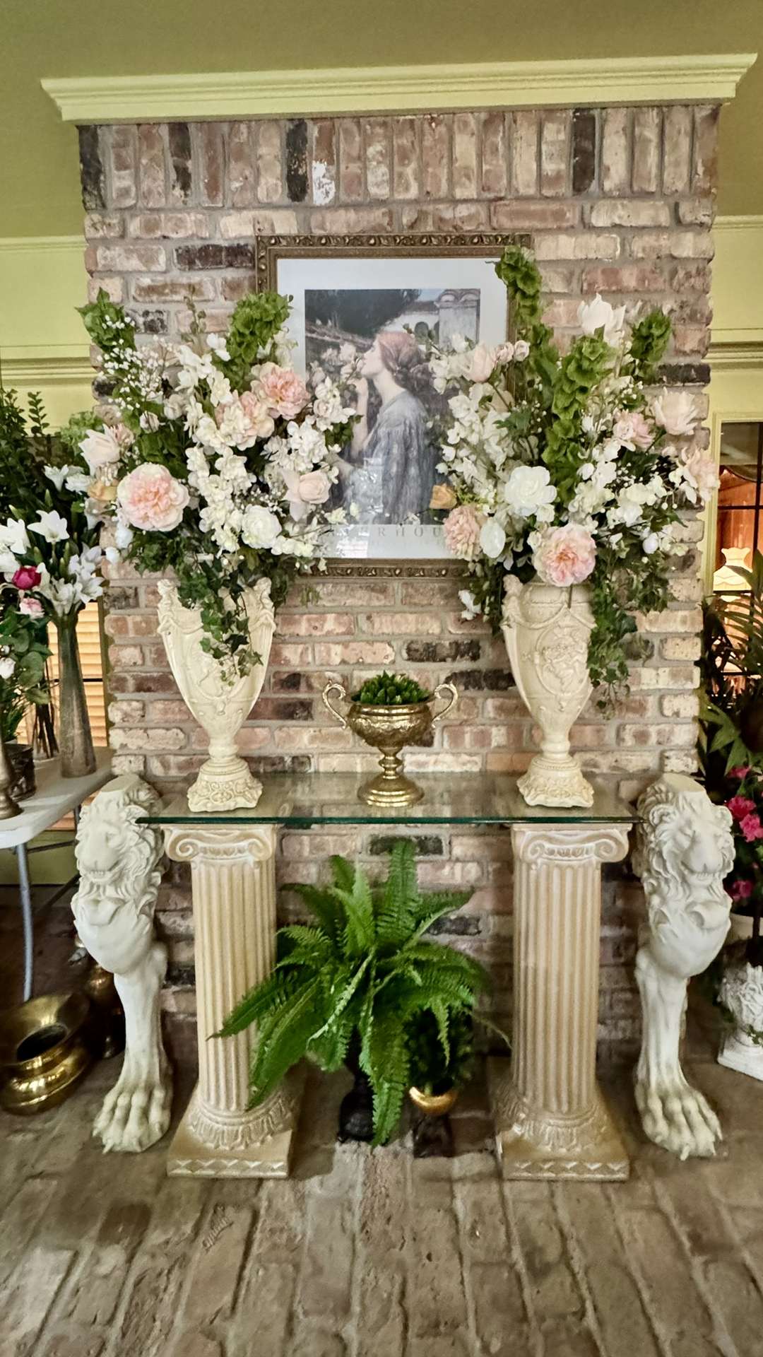 Welcome to the Living Estate of Buck and Bobbie Rose Whorton—a well-kept home filled with warmth, comfort, and years of thoughtful collecting. From the moment you enter, you can feel the care and intention the Whortons put into creating an environment with touches of Southern tradition and Italian and French influence from their travels throughout Europe. Cast iron pedestals and urns flank the front entry, adding a classic touch as you approach the home.