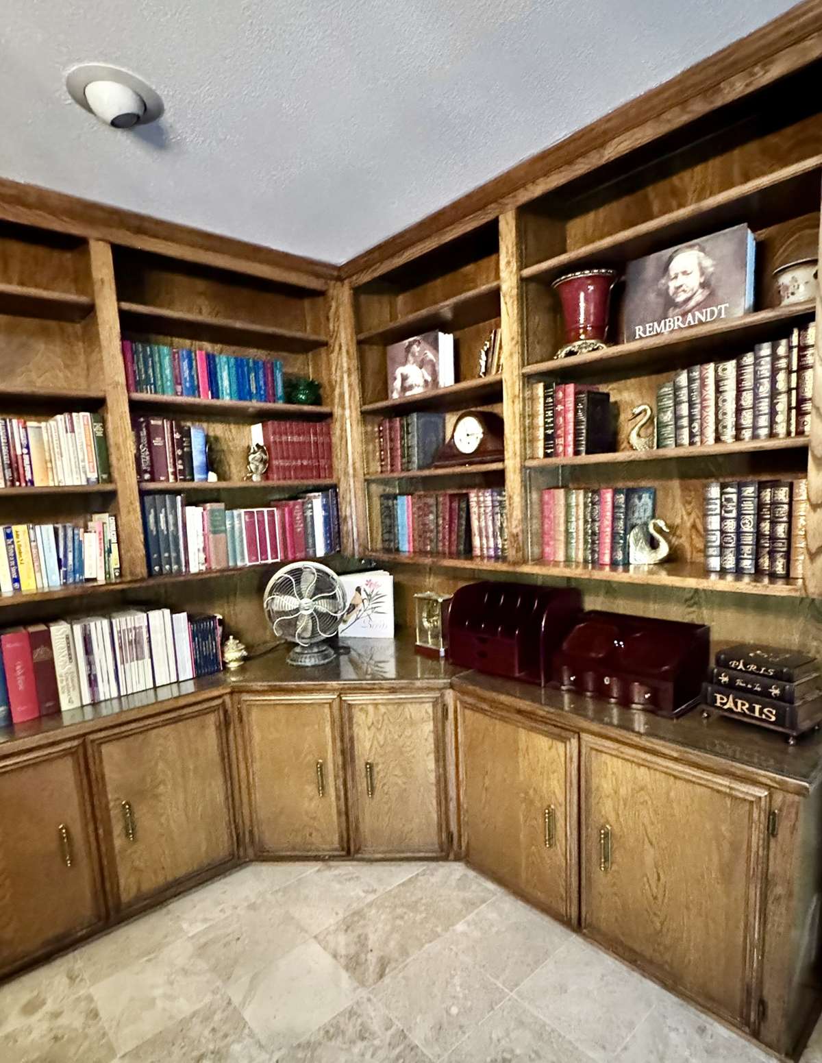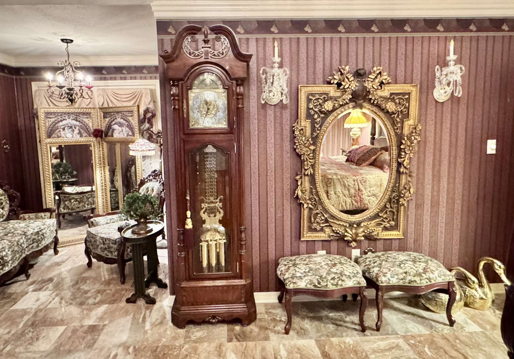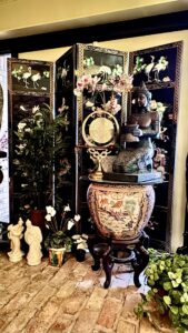 Finishing touches throughout the estate include two Howard Miller grandfather clocks and one Sligh, as well as impressive porcelain Asian fish bowls and floor vases. Together, these elements create a comfortable environment—inside and out—that reflects the thoughtful curation of the Whorton home.
