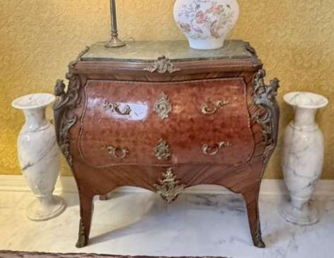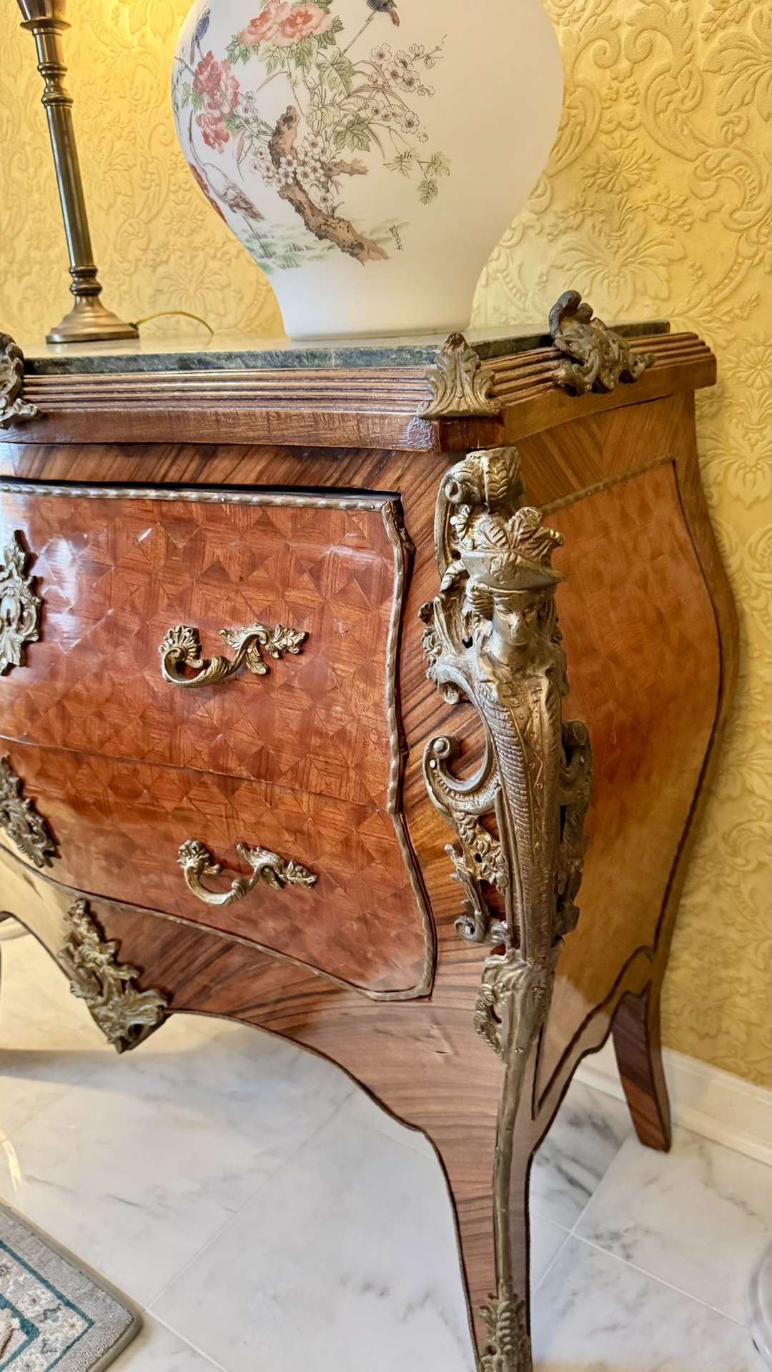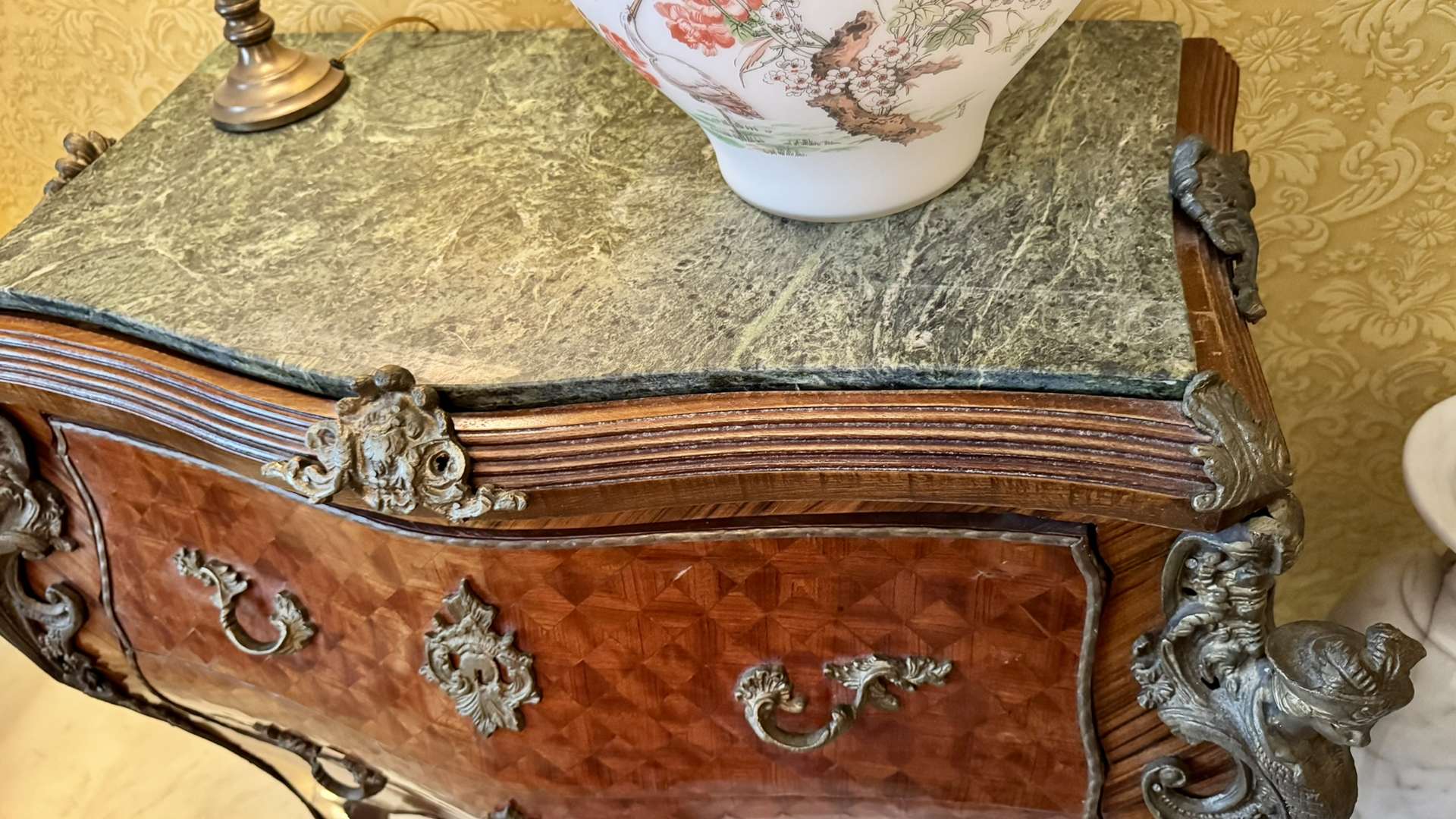 • Louis XV–Style Bombe Chest with Green Marble Top